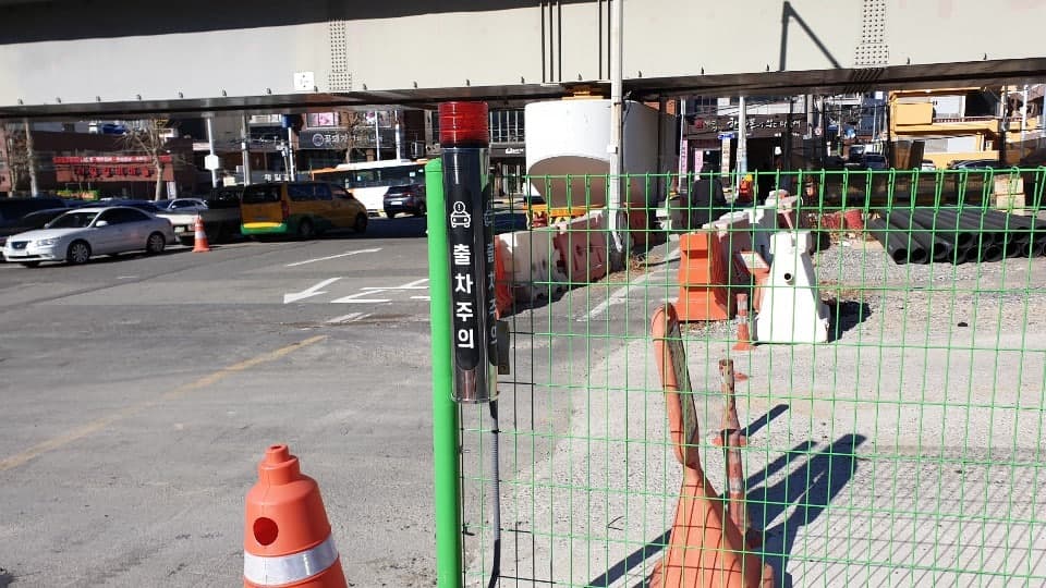 부산 사상역 공영주차장 출차주의등